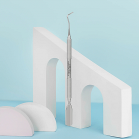 Pedicure pusher (double-ended curette). The working part "curette" is used for partial removal of dry calluses and work with an ingrown nail. Anatomically convenient shape: the curve of the curette follows the shape of the nail plate. Professional manual sharpening. Corrugated handle improves the fixation of the tool in the hand of the technician. Additional resistance to corrosion due to polishing with GOI paste. High-alloy stainless steel. Resistant to sterilization in a dry heat oven and autoclave. Can be subject to disinfection with special agents. Recommended for pedicure.